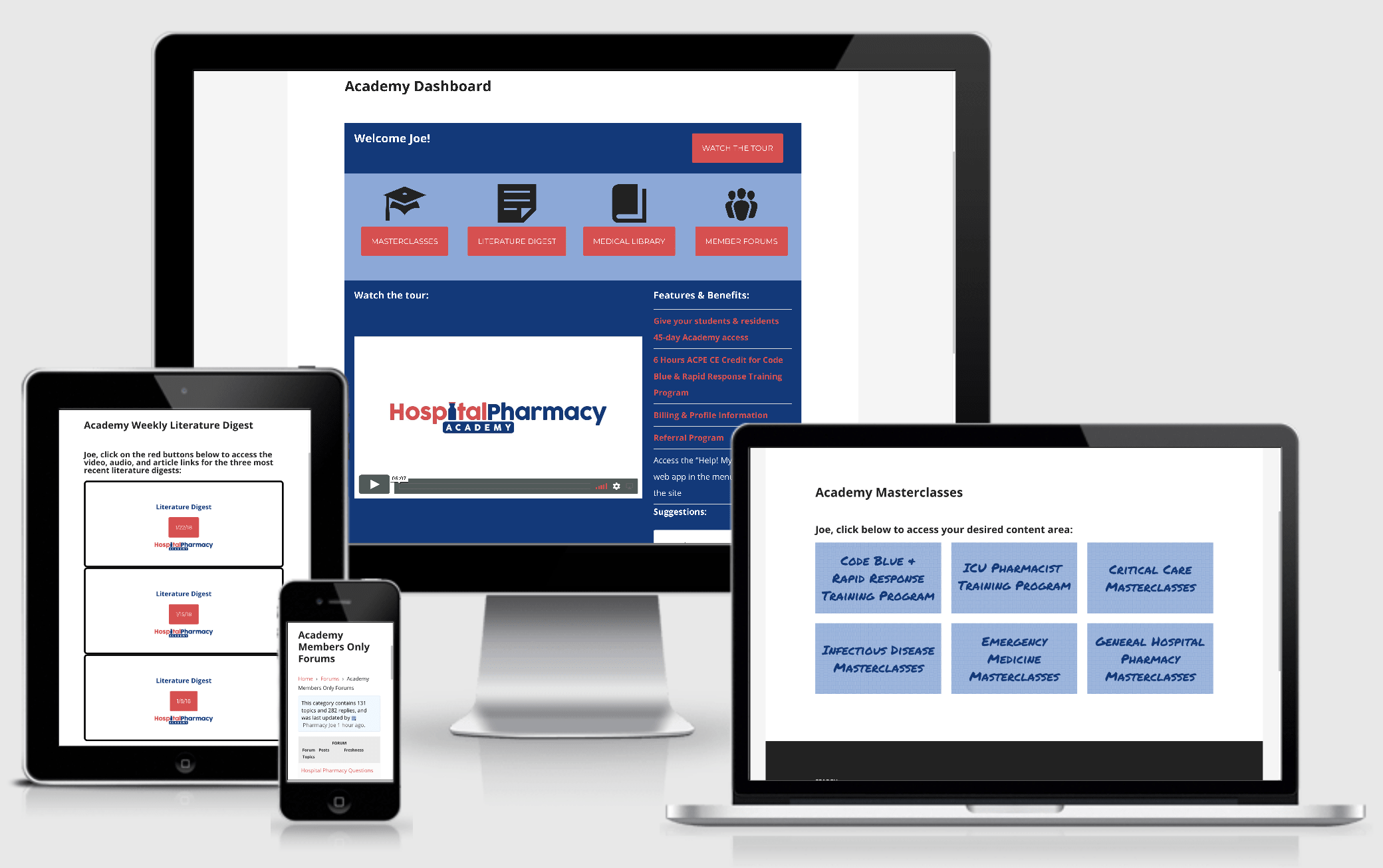 The Hospital Pharmacy Academy is an online membership site created by a hospital pharmacist that cares about other hospital pharmacists.