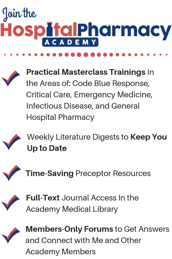 If you like this post, check out my book – A Pharmacist’s Guide to Inpatient Medical Emergencies: How to respond to code blue, rapid response calls, and other medical emergencies.